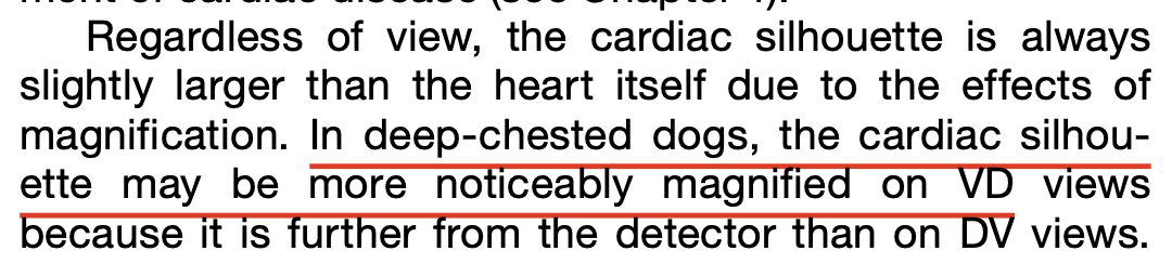 The heart is magnified in a VD/DV (choose one) radiograph.