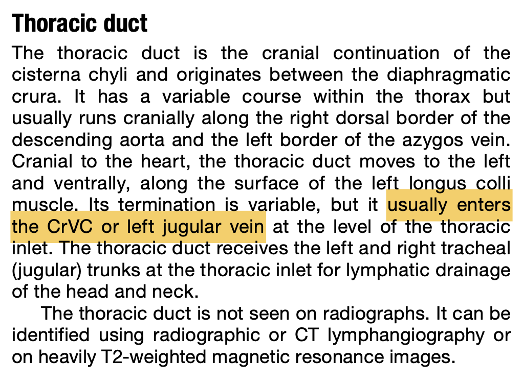 Where does the thoracic duct usually empty