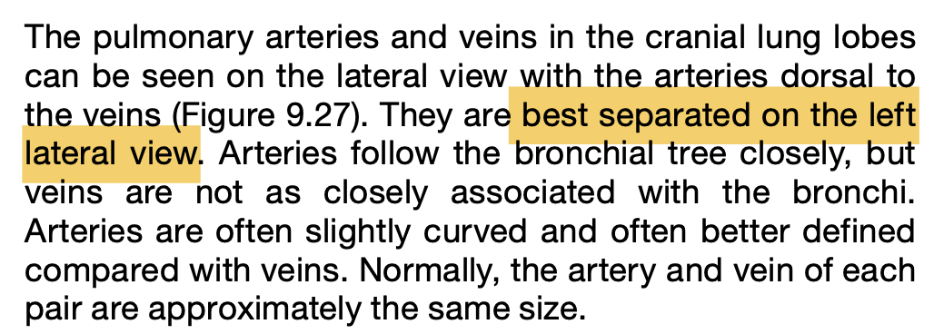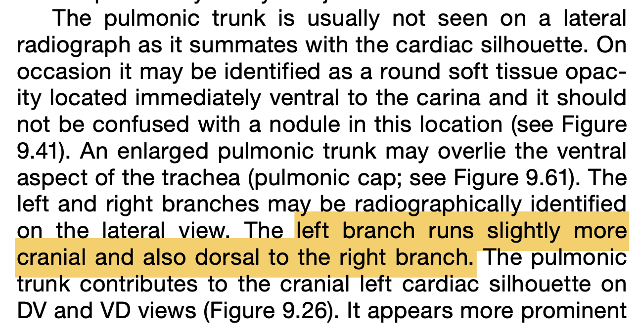 On a lateral thoracic radiograph, which pulmonary artery is more dorsal - left or right?