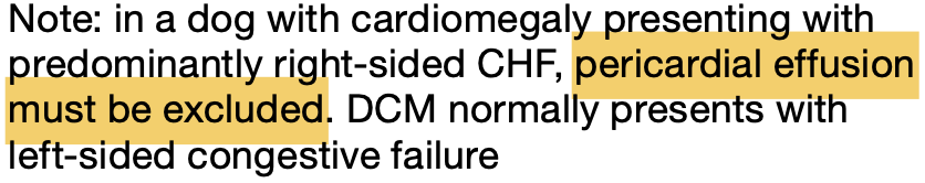 Pericardial effusion, because DCM usually presents with L-CHF