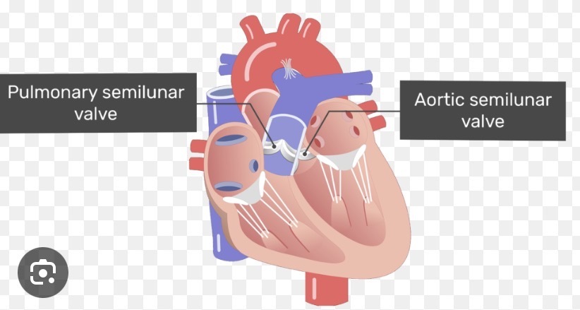 pocket like structures between the ventricles and arteries that ensure one way blood flow out of the heart