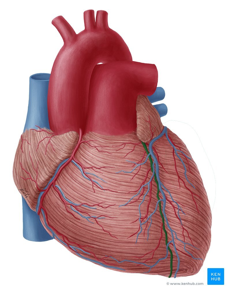 blood vessels that wrap around the outside of the heart, supplying oxygen rich blood to the myocardium