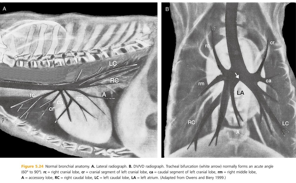 Cat tracheas DO NOT bend ventrally at the heart base.