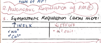 In sympathetic regulation what is the autonomic regulation of PM function?