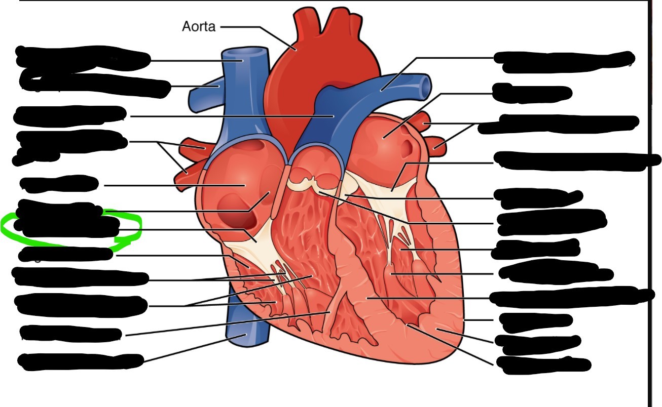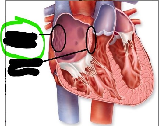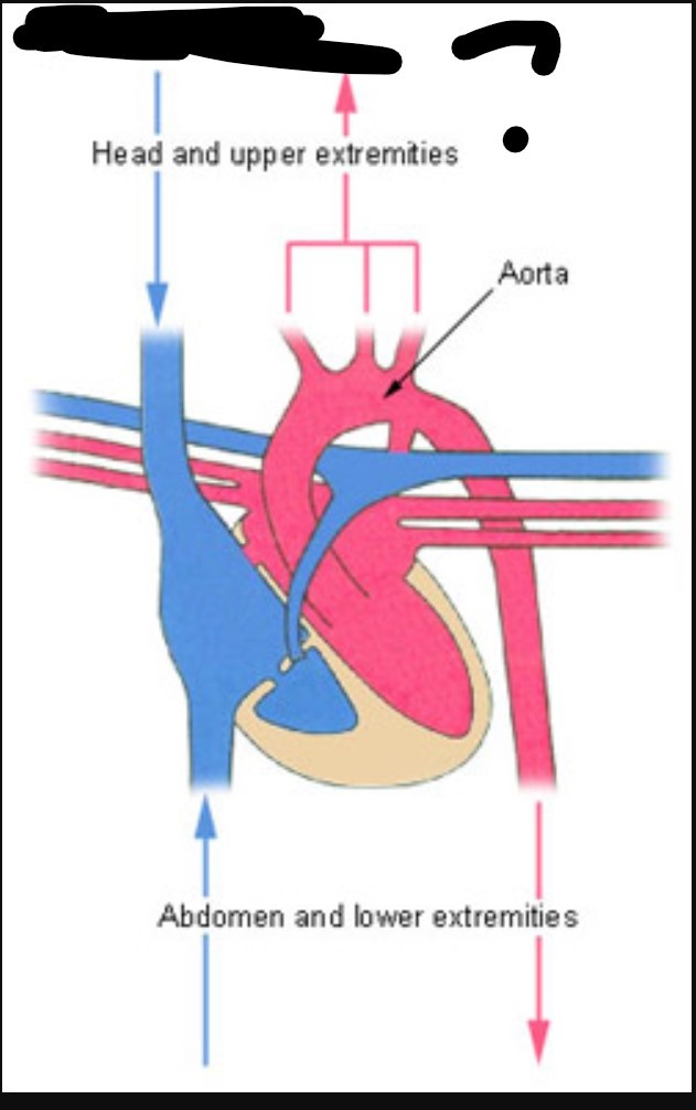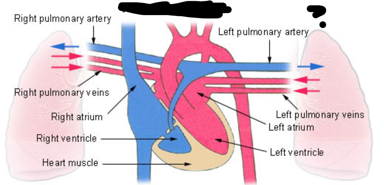 a door between the left ventricle and the aorta. Blood flows to the heart through the right atrium and right ventricle to go to the lungs. After the lungs, the blood returns to the left atrium and the left ventricle.