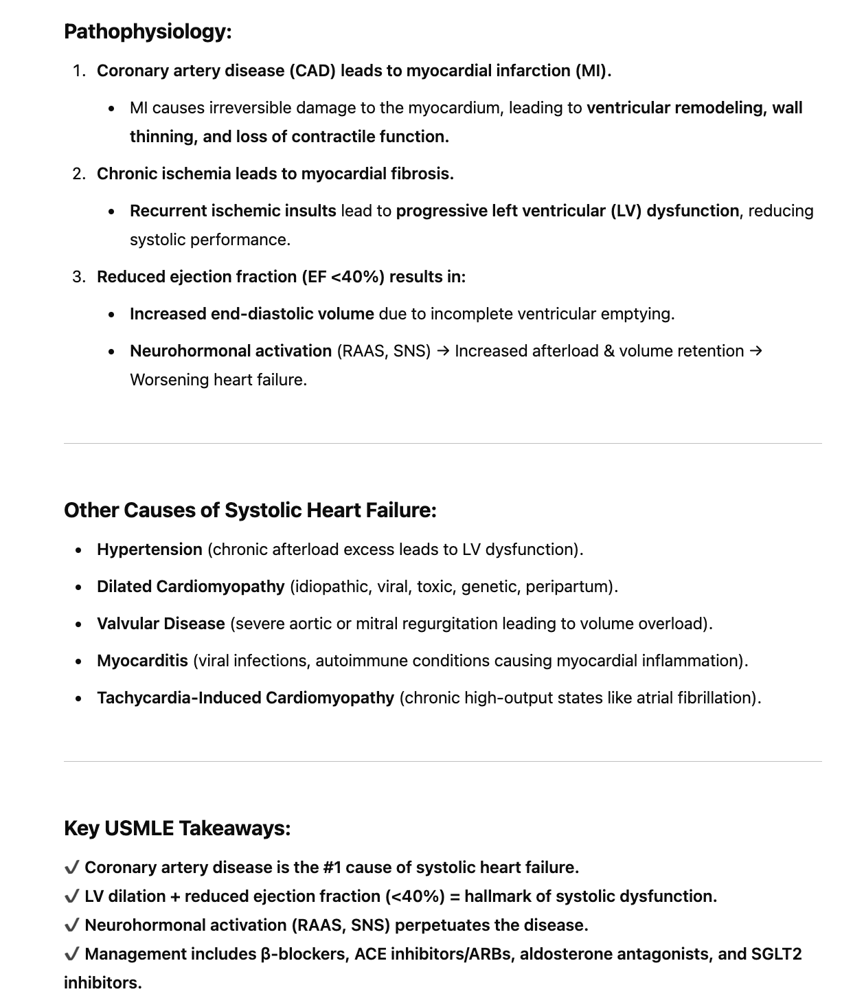 The most common cause for heart failure with reduced ejection fraction (HFrEF; systolic dysfunction) is myocardial infarction or ischemic disease. The most common form of HFrEF is dilated cardiomyopathy. Less common causes of dilated cardiomyopathy are myocarditis and stress cardiomyopathy.