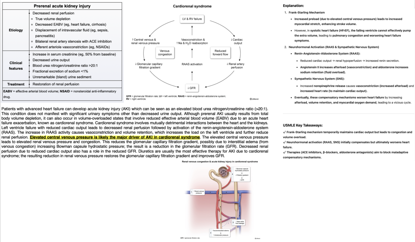 In heart failure, the body compensates through mechanisms such as sympathetic nervous system activation and ** fluid retention (RAAS activation)**, which is driven by central venous pressure.