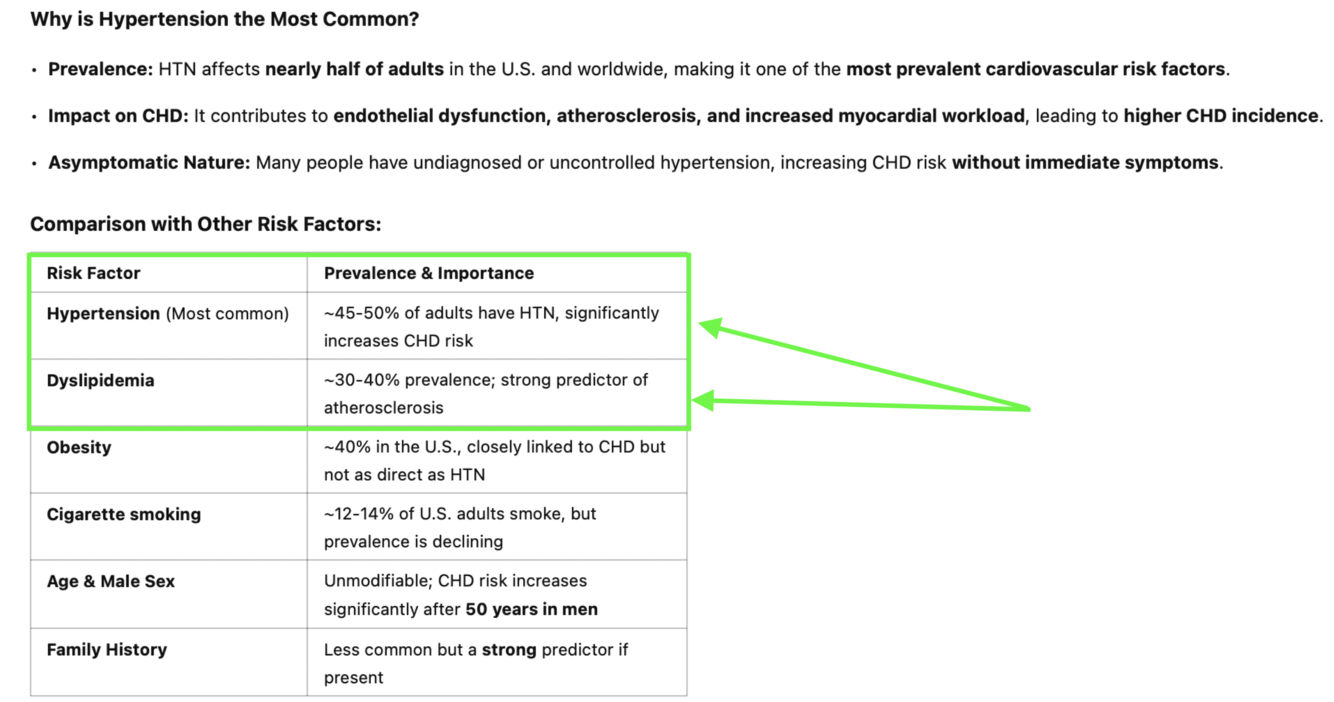Atherosclerosis is the most common underlying cause of coronary heart disease (CHD). However, in regards to the most common risk factor that leads to CHD, then hypertension (HTN) is often considered the primary driver, as it accelerates endothelial damage and atherosclerotic plaque formation.