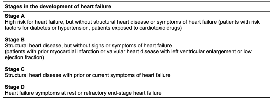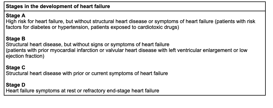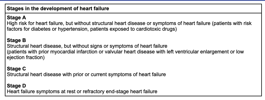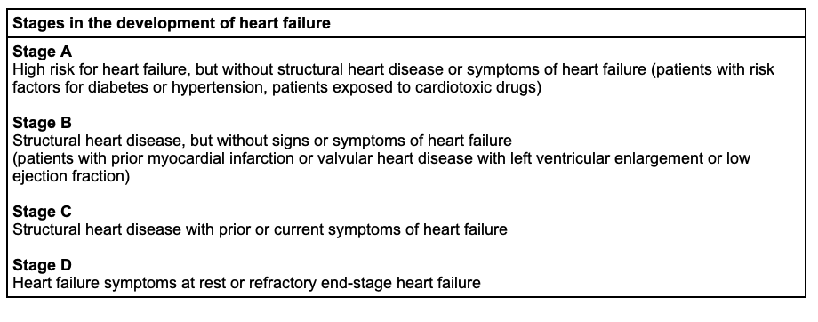 What stage is considered structural heart disease with prior or current symptoms of heart failure?