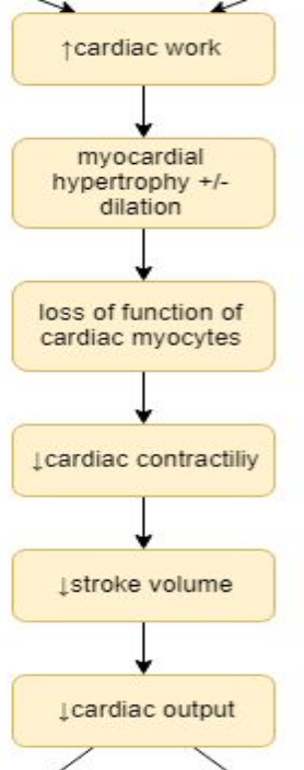 chronic overload leads to decompensation where the cardiomyocytes lose their contractility