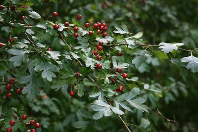 Crataegus are deciduous trees and shrubs, usually with spiny branches, lobed or toothed leaves, and clusters of creamy-white flowers followed by red or black fruits. Some have fine autumn colour