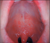 -Unilateral swelling of the peritonsillar area and soft palate.