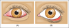 Blepharitis: Inflammation of the edges of the eyelids where the eyelashes grow. The tiny oil glands at the base of the eyelashes become clogged. The eyelids (upper and/or lower) are red, irritated, and itchy. Small scales like dandruff may be present. Blepharitis tends to recur. May be associated with dandruff, seborrheic dermatitis, or rosacea.