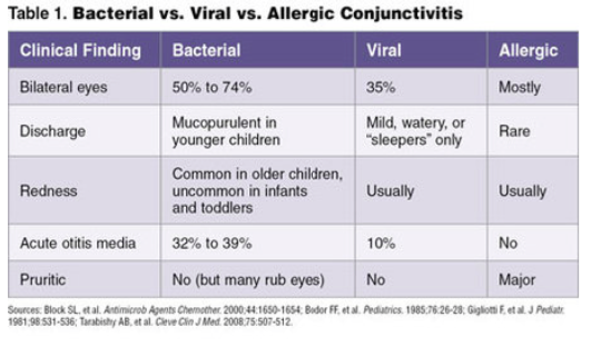 bacterial vs viral vs allergic conjunctivitis