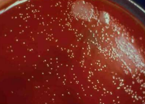 Slow-growing, flat, non-pigmented, non-hemolytic colonies.