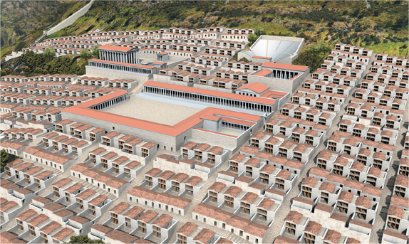 strict grid plan conforming to the principles of Hippodamos of Miletos, whom Aristotle singled out as the father of rational city planning