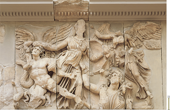 Athena battling Alkyoneos, detail of the gigantomachy frieze, Altar of Zeus