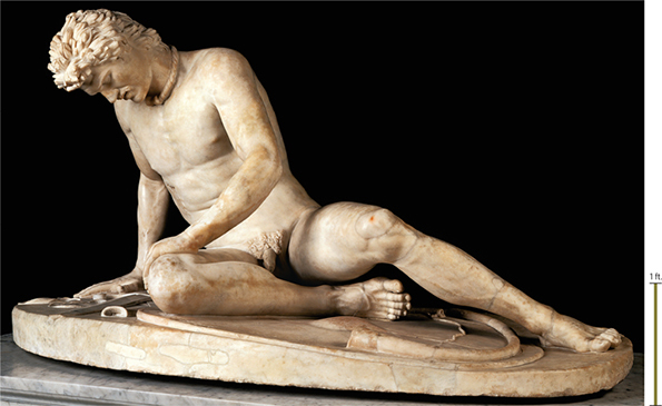 depicted this defeated Gallic trumpeter and the other Gauls as barbarians with bushy hair, mustaches, and neck bands, but also as noble foes who fought to the death.