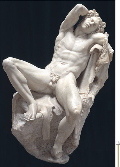 represented a restlessly sleeping, drunken satyr, a semihuman in a suspended state of consciousness—the antithesis of the Classical ideals of rationality and discipline.