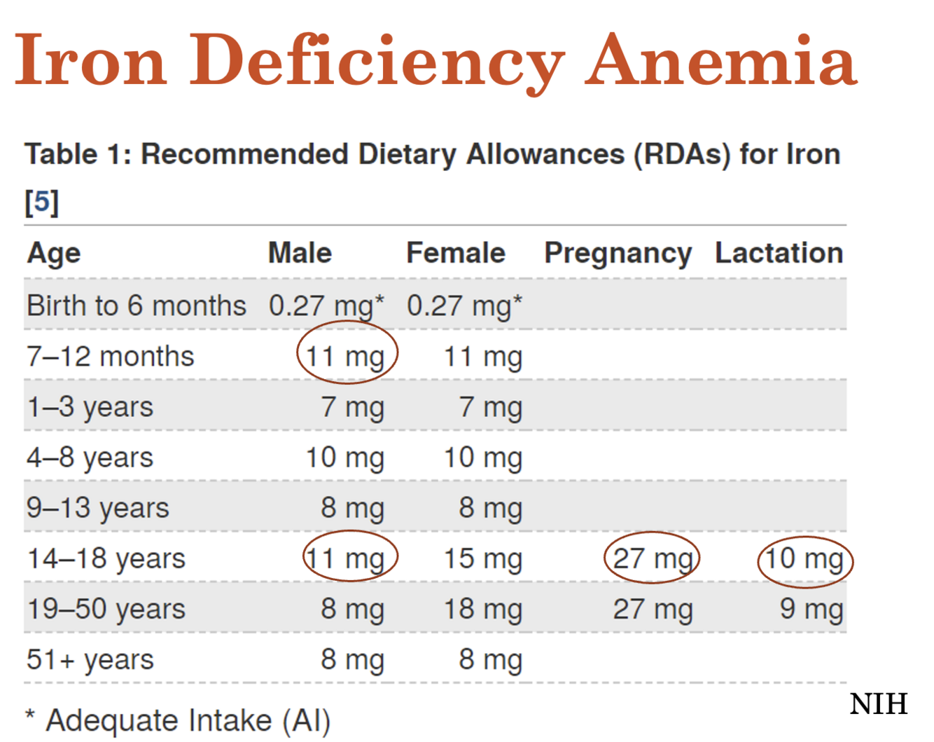 RDA for Iron: