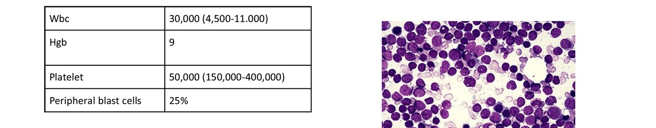 6 year old child with fever, malaise, lymphadenopathy and hepatosplenomegaly. Shown is the cbc and bone marrow aspiration slide. What is the most likely diagnosis?