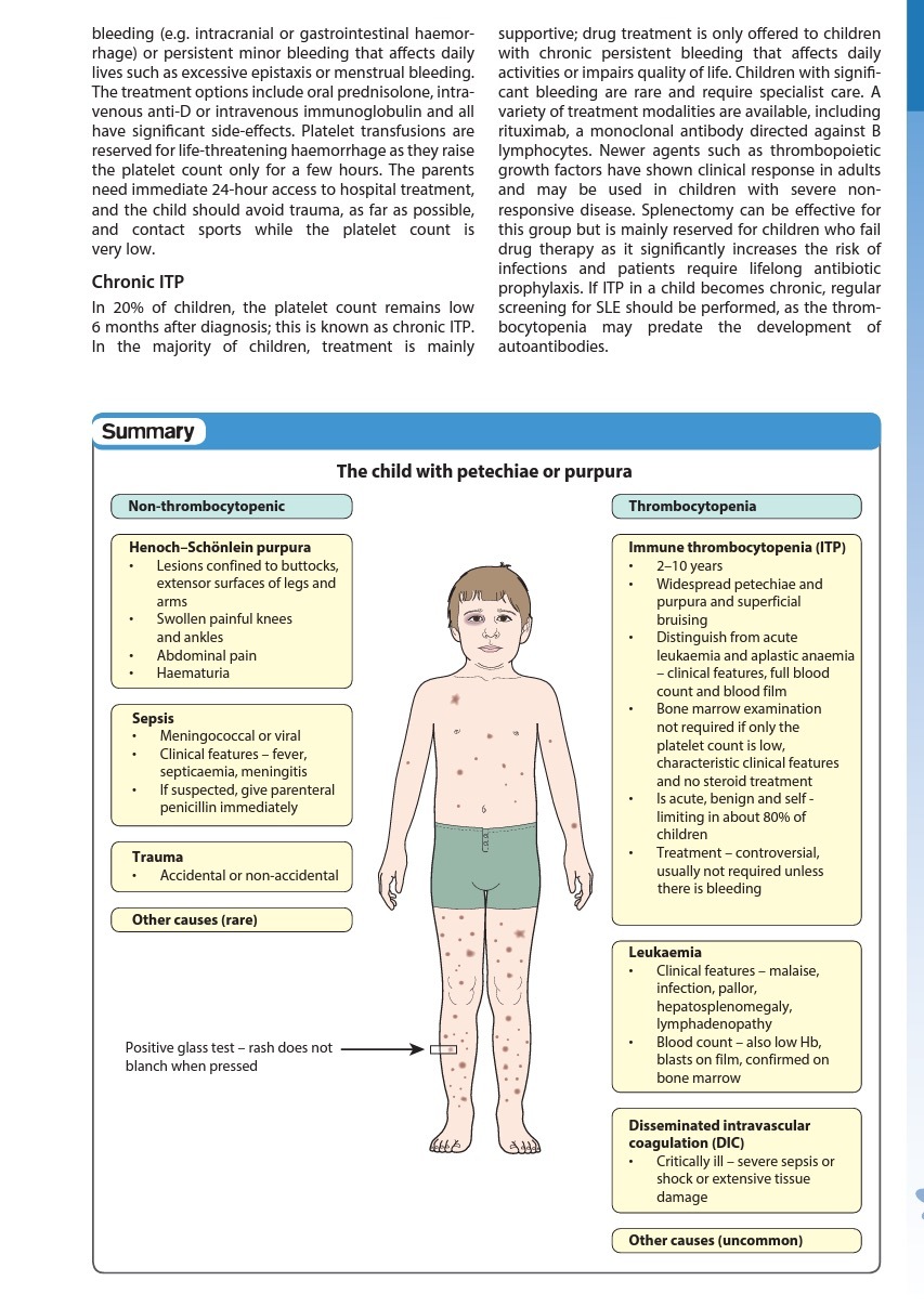 Life-threatening bleed: additional platelet transfusion ± emergency splenectomy Supportive RX : avoid contact sports and ASA/NSAIDs