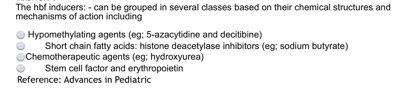 5-azacytidine, butyric acid, erythropoietin and hydroxyurea