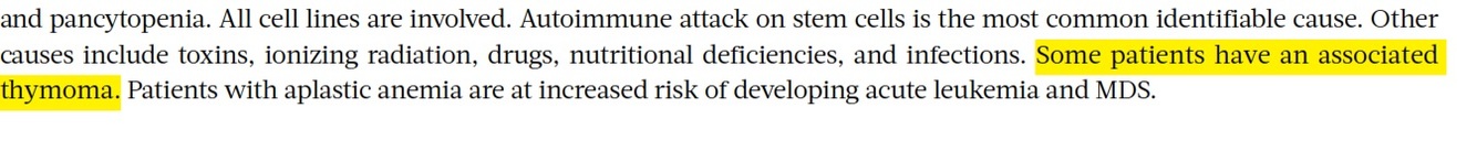 Treatment: thymectomy for thymoma, MTX or cyclosporine for granular lymphocytosis