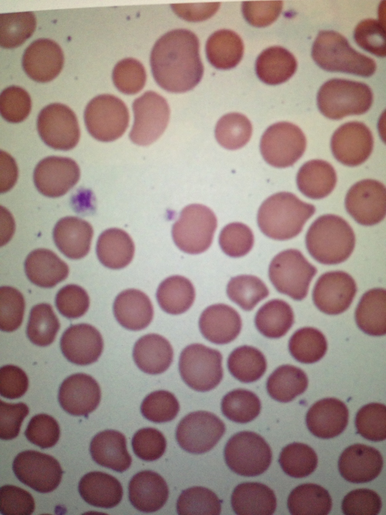 patient with mild jaundice, RBC peripheral smear is shown, the dx was made by osmotic fragility testing & an increased MCHC