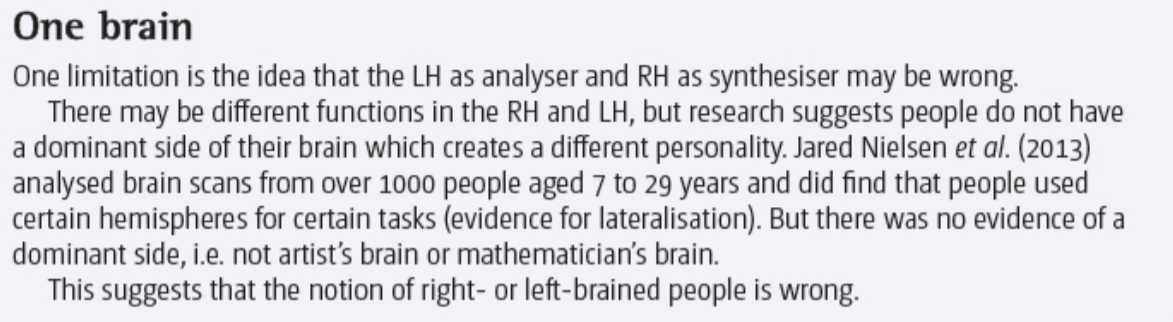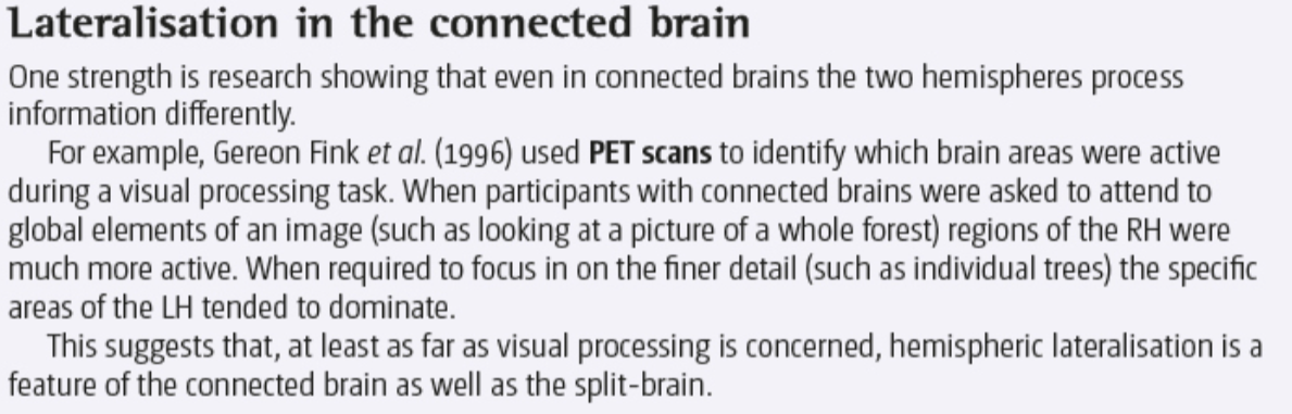 Biopsychology > HEMISPHERIC LATERALISATION EVALUATION > Flashcards