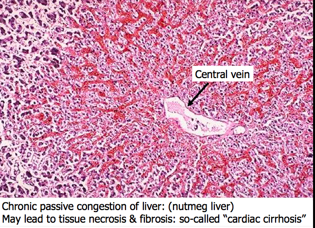 may occur systemically (liver and lung congestion due to heart failure) or locally (obstruction of superior sagittal sinus of dura)