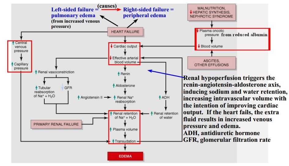 Decribe the process of heart failure that results in edema
