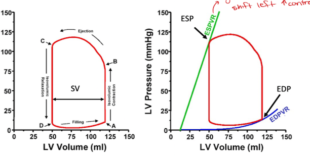 Shift left on Pressure volume loop = increase contraction
