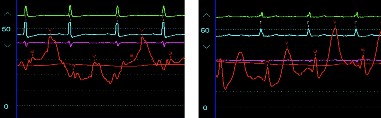 What constitutes a pathologic or abnormal “v” wave in PCWP tracings?