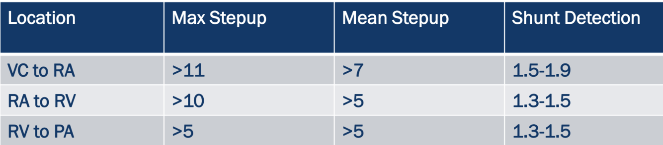 Describe locations for mixed venous O2 sats in shunt calculations: