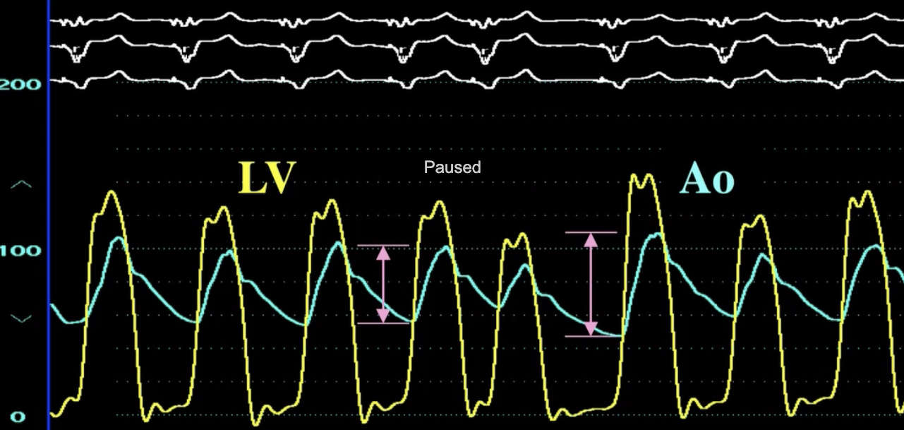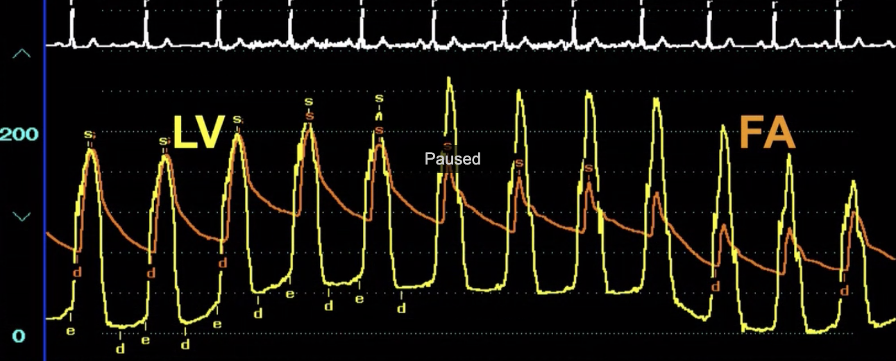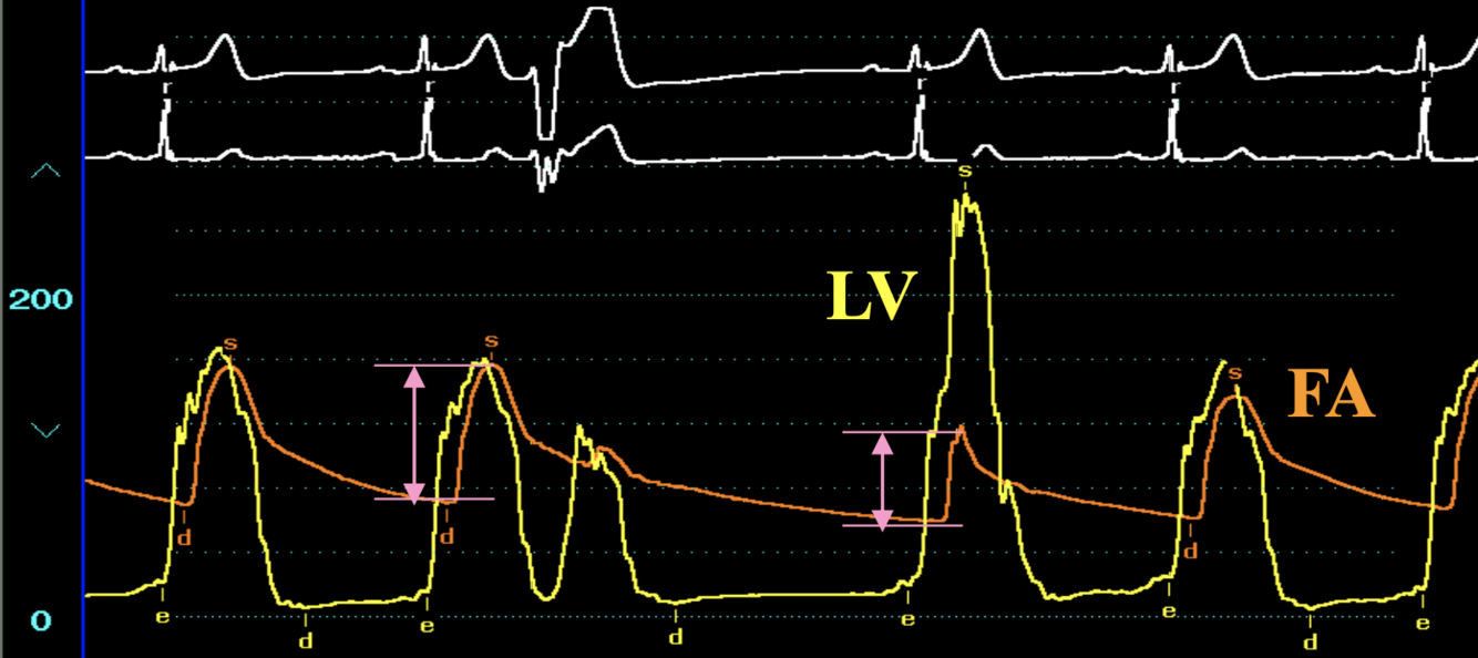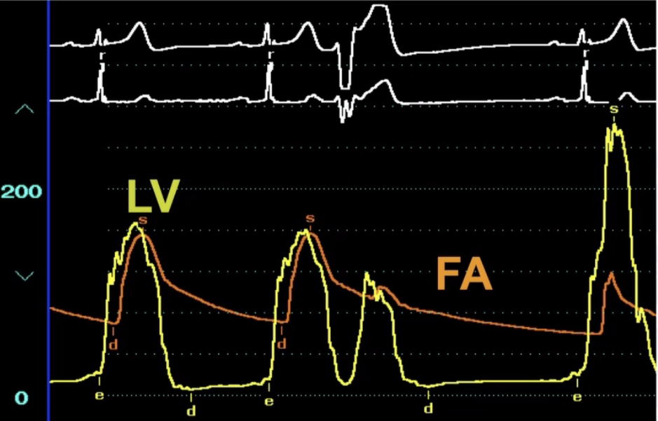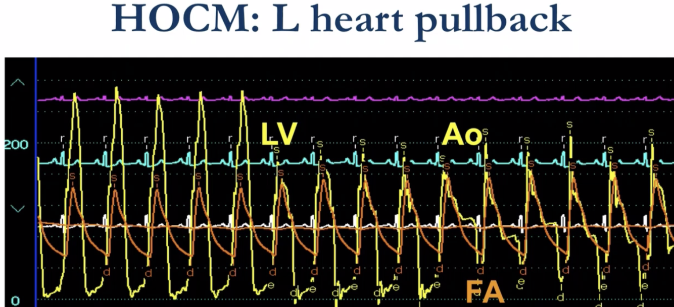 How can you differentiate AS and HOCM on intracardiac pressure tracings?