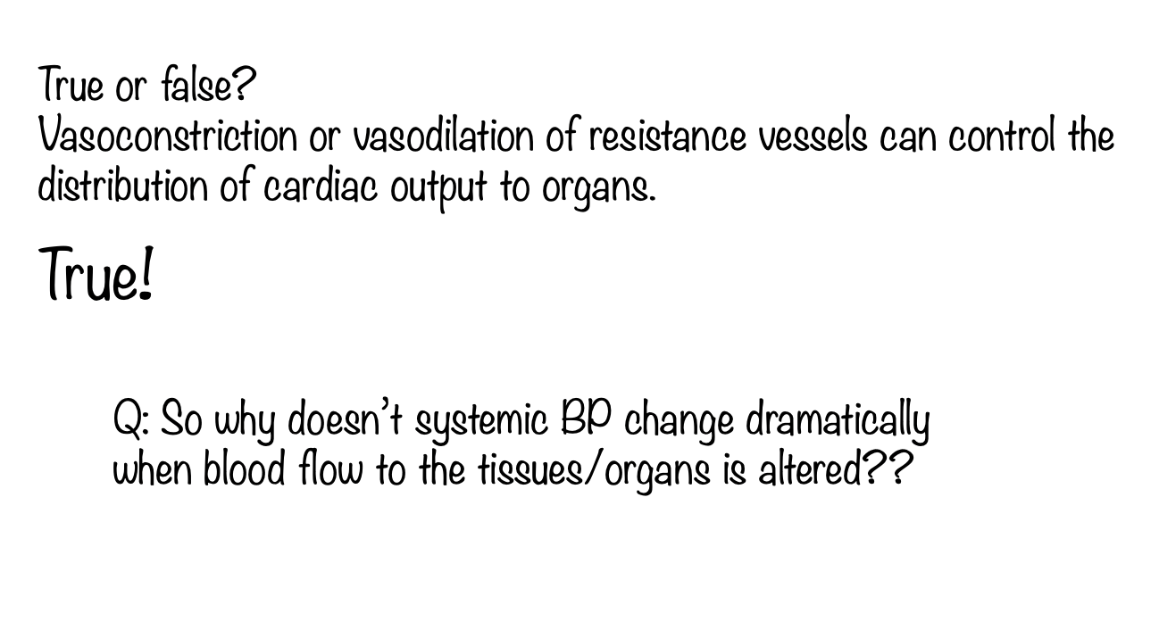 Capillaries are arranged in parallel. This allows the body to alter local vasoconstriction and vasodilation to alter blood flow locally to tissues without changing total resistance. If total resistance is unchanged and flow is constant, then pressure will not change.