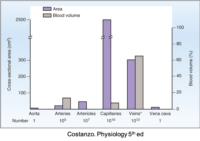 The sum of the cross sectional areas of all capillaries is substantially greater than all other compartments of the circulatory system! Where is the greatest volume of blood held though?