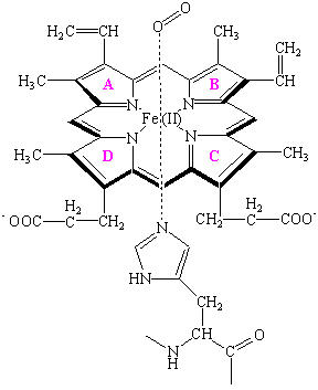 Heme consists of a protoporphyrin which has a singe Fe2+ bound.