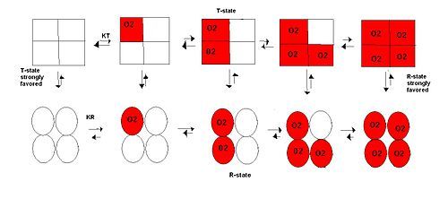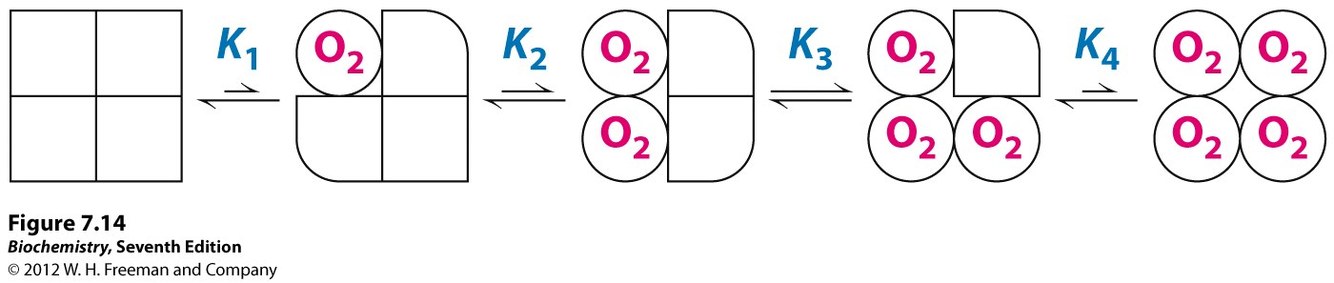 2nd picture of sequential binding of hemoglobin to oxygen.