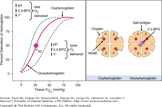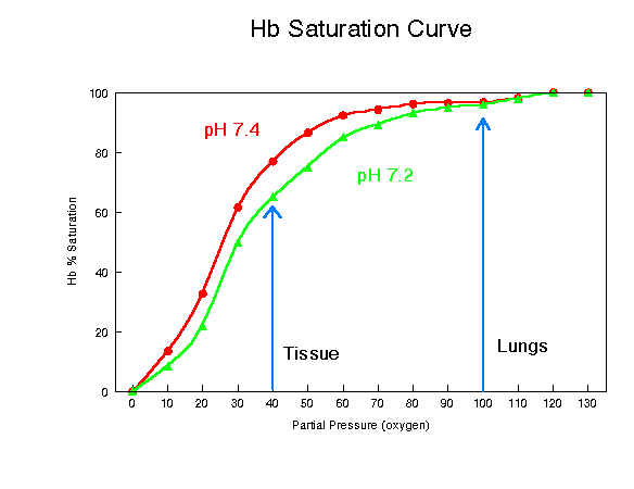 Picture showing impact of 2,3-BPG, pH, and Temperature on oxgen delivery to tissues.