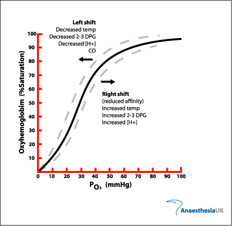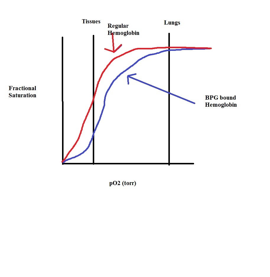 When bound with 2,3 BPG however, the affinity goes down and the dissociation curve shifts to the right