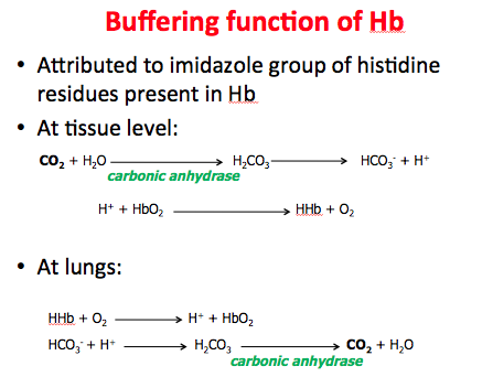 Explain the buffering function of hemoglobin!