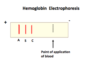 How is the hemoglobin electrophoresis when HbS, HbC, and HbA are compared?
