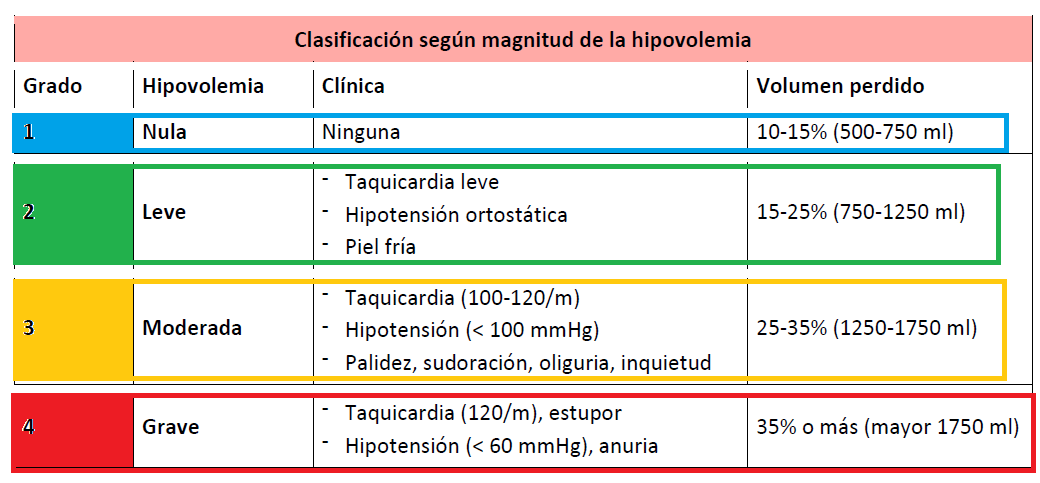 Aguda: hemorragia de gran cantidad con importante velocidad (vence los mecanismos compensadores). Paciente cursa con descompensacion hemodinamica y shock.