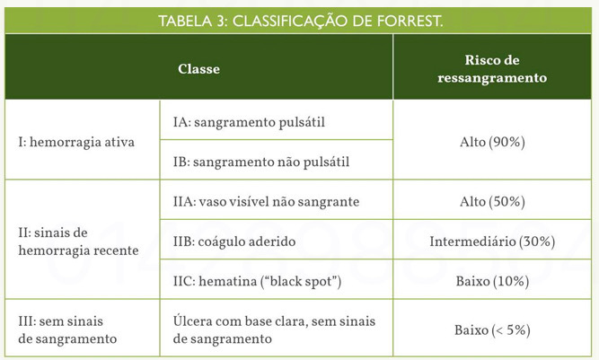 Quais as classes do Forrest que indicam tratamento endoscópico?