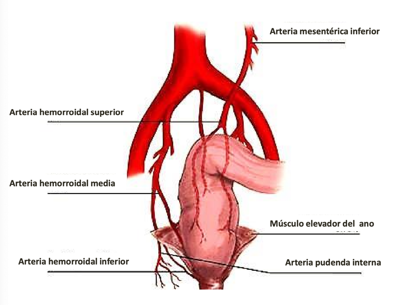 Hemorroidal superior (mesentérica inferior), hemorroidal media (ilíaca interna) y hemorroidal inferior (pudenda interna).
