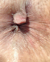 * Grado Ill. Sangrantes con prolapso y hemorroides externas chicas: