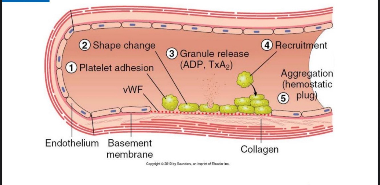 GPIb-V-IX binder vWF och initierar adhesion samt startar trombocytaktivering med formförändring och granularespons.