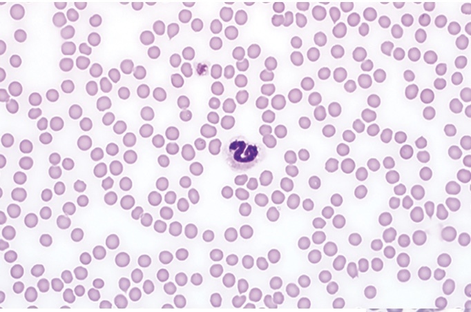 normal blood smear, no platelets
